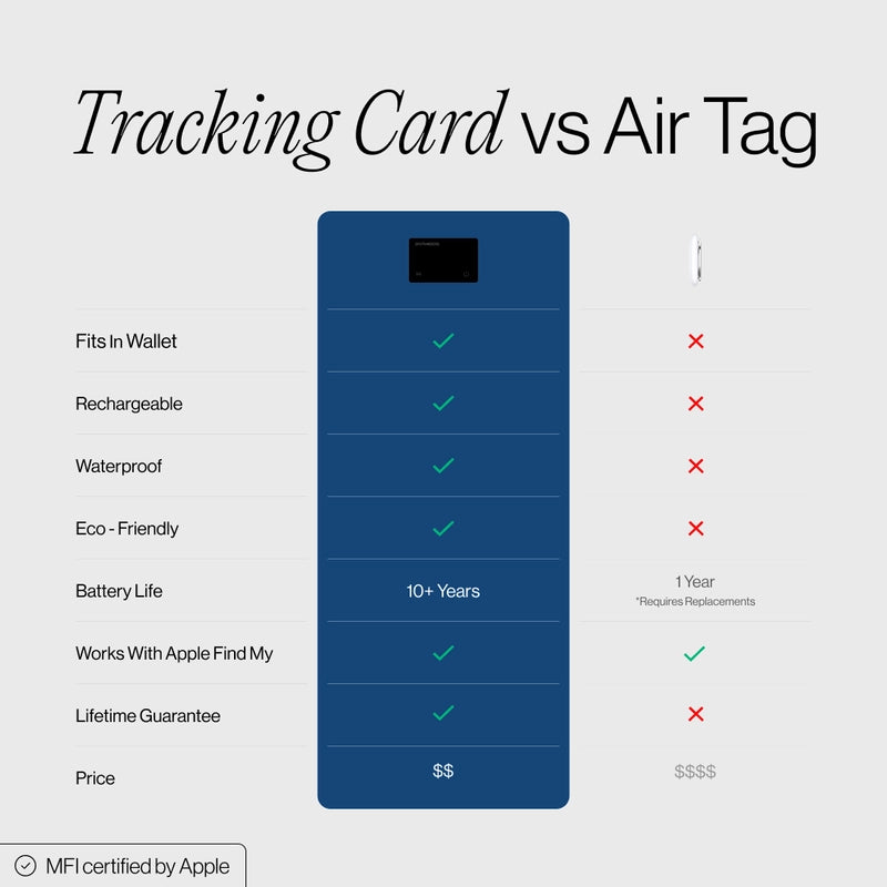 SlimFind is a slim, durable tracking card designed to work seamlessly with Appleās Find My network.